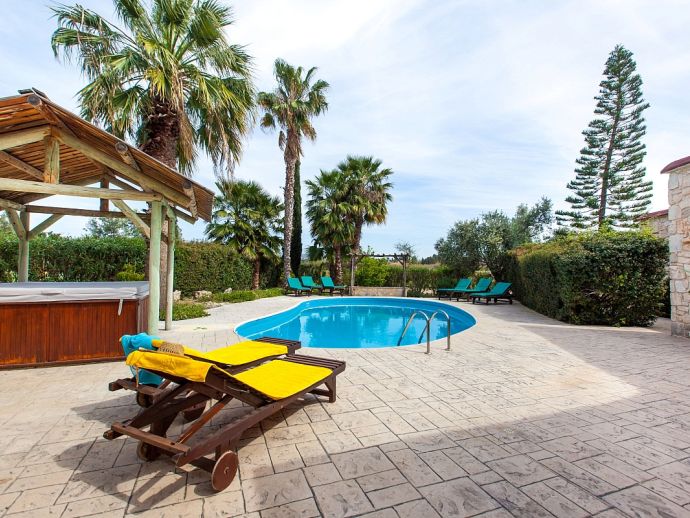 The Latchi Villas are set in their own attractive gardens, just 10/12 minutes walk to the beach and conveniently located to the amenities at Poli Crysochous. The villas offer every modern comfort and sleep 6 guests in tastefully appointed bedrooms with attractive furnishings and fitted wardrobes. An open plan living space which includes a fully equipped kitchen, dining area and a comfortable lounge with fireplace and Smart TV, creating a relaxing and welcoming ambience. Outside, each has a private pool complete with exterior Jacuzzi, a built-in barbecue and plenty of outdoor furniture to enjoy al-fresco dining or relaxing in the sunshine by the pool.
